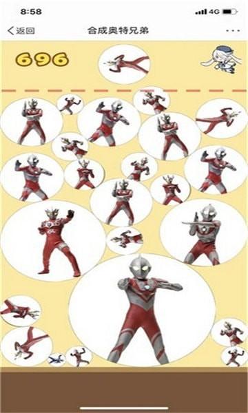 2、简单有趣的指尖操作方式,令人上瘾的游戏玩法,和朋友们一起来挑战,看谁合成的奥特曼的图片更多,欢乐无限。