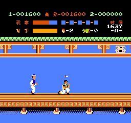 一开始左边右边就会出现一群的小喽啰,用站拳或蹲踢击退他们,打完后赶快往左边移动,因为这些家伙是无限的,打完了会不断地补货~ 用脚踢100分,用拳200分 其中会出现射飞镖的蓝衣角色,耐久力比较强些,需要打两下才打得掉,跳踢一下,蹲拳一下,这样分数是800分,比光用脚踢500分高。