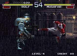 银河快打星系格斗是由SUNSOFT公司制作的对战格斗游戏。游戏采用了画面缩放的特效,只是感觉画面有点偏暗。游戏的人设一般,操作还算可以。角色的必杀技如果在前冲冲时使出除了距离更远外威力也更大。曾在登场的奖金人棍也在本作登场,但招式却少得可怜。如果击败所有对手不输一局的话,隐藏人物罗维会乱入向玩家挑战。他的必杀技和<街霸>里面的RYU非常相象。