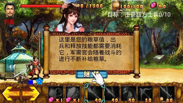 游戏进行中左右两箭头可控制上阵武将的移动;