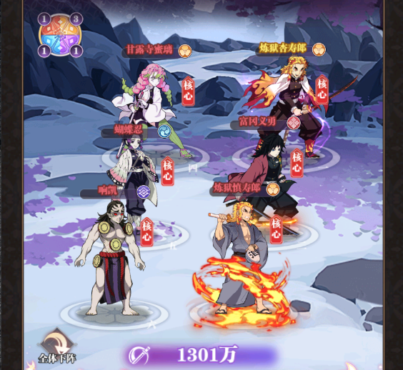 杏寿郎(炎柱):以其高攻击力和技能效果在战斗中表现出色。