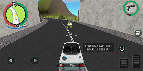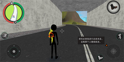 左侧移动、加速,右侧绳索,攻击(跳跃),跳跃,右上侧的武器更换以及血量、经验的显示都实时更新,一览无遗,凭借着大家自由的玩法,与其他帮派的人物进行交火,期间杀人能够获得经验,杀多了会产生星级,警察和其他附近角色会特殊照顾你对你展开火热的进攻,而如何存活,如何将其他人物击杀则是你所需要完成的任务。