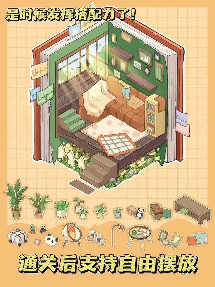 3.游戏提供了丰富的家具、装饰品和建筑材料,你可以根据自己的喜好自由拼贴,完成关卡目标。