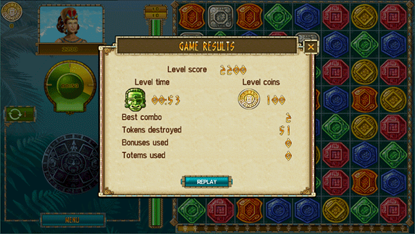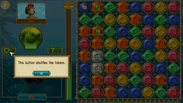 8、进入下一关前,可以用金星购买能量图腾,每种图腾都有自己独特的能力。如红色图腾可以放出火球,桔色图腾可以延长时间。连续两次对同色小牌使用成队法就可以激活能量图腾。比如要激活火图腾,连续两次对红色小牌使用成队法即可。