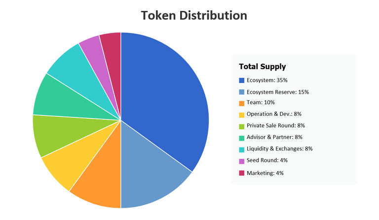 生态系统储备: 15%(1.275亿枚):48 个月内逐步释放,无初始锁定期。