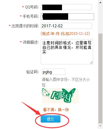 打开http://kf.QQ.com/im/imc/bills/160519samcf3fe50f70b.html 按照提示填写内容填写完成之后,点击最下方的提交。如下图: