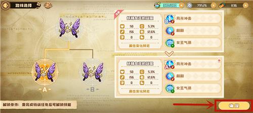 随后会来到技能专精的路线选择界面,如果你当前是专精B,点进来就会自动切换显示专精A,反之亦然。点击右下角的确定按钮。