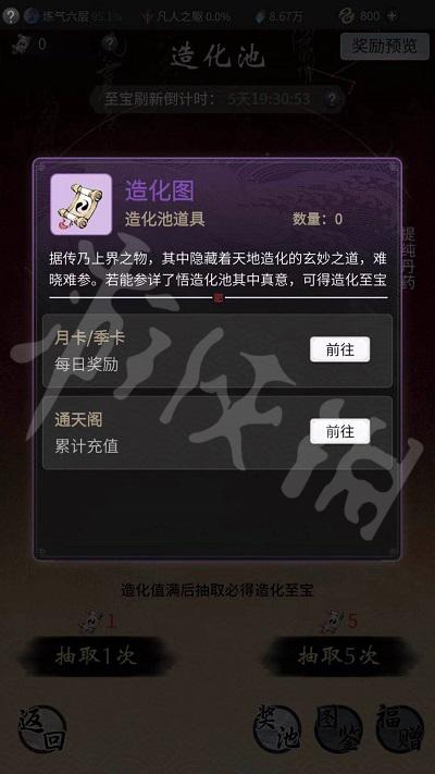 1.通过购买季卡/月卡,每天可以获取一张造化图。