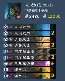 大地之力:根本上适合于快攻内战,用于蚕食对方随从,打卡差,如果你的环境快攻较多,可以去除维西纳,加入大地之力。(沙暴元素和笼斗管理员被贴大地之力会给随机元素牌,弥补资源)