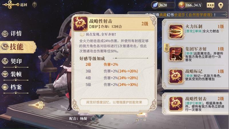 但《战争学》卡琳最灵魂的技能是一技能,它可以让射程足够的我方幻书对单一目标各造成一次普通攻击,无论是配合多位单攻幻书对单一目标造成大量伤害,还是配合依靠小范围普攻输出的幻书来推图,都非常好用。