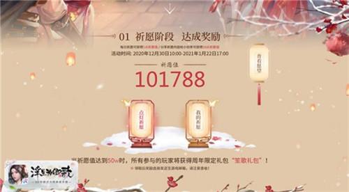 除活动以外,本次盛典的奖励也十分丰富。当全服玩家祈愿值达到一定数额,即可领取相对应的礼包,内容包括:突破石、元宝、红色万能碎片、浮生梦等等。短短数日目前祈愿值已突破十万大关!
