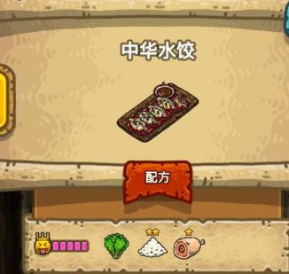 在黑暗料理王游戏中,中华水饺的皇冠配方是:中华水饺=生菜+面粉+肉。
