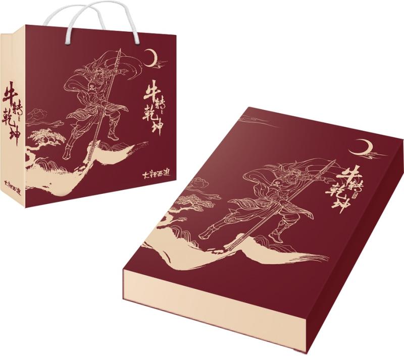此次的足金明信片均以99.99纯金精心打造,工笔画风绘制精巧,人物线条流畅,动态栩栩如生,背景画面更是充满了国风意境。六款明信片依据画面上主要人物“逆天魔”和“黄金兽”分为两大主题,并在细节和画面上各自进行了不同设计,款款精致,价值非凡。逆天魔在画面中的动作威武帅气,黄金兽的昂首摆尾也霸气四溢,配合画面中的日月、远山、松柏、祥云等充满吉祥寓意的背景图案,交织成了一幅幅独具大话风格的国风美景。