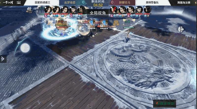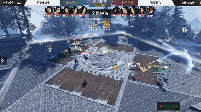 跨服淘汰赛第十一场和第十三场,来自独立寒江的胡哥戒烟中战队迎战来自踏月留香的我要起飞战队,开局双方都靠自创打出强劲伤害,第一轮中胡哥戒烟中战队依靠极高的集火效率接连带走对方武当云梦获得胜利,但第二轮中我要起飞战队及时调整策略,在追求输出的同时更加重视稳扎稳打,最终在时间结束前最后一刻完成了全员击杀,获得了第二轮的胜利。