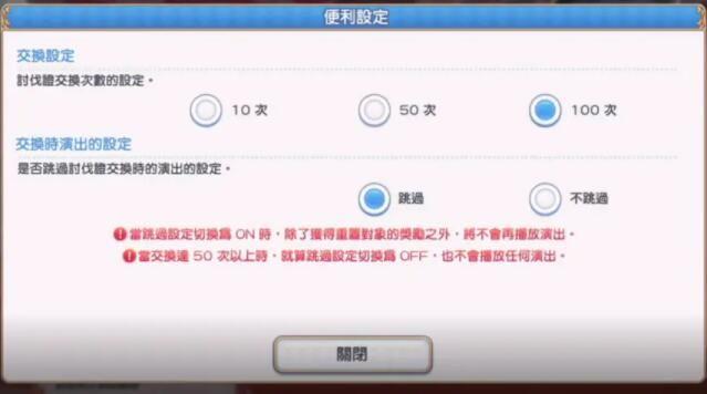 注意抽取时把上方的便利设定调成100次和跳过,这样可以节省抽池子的时间,算是一个很方便的功能。