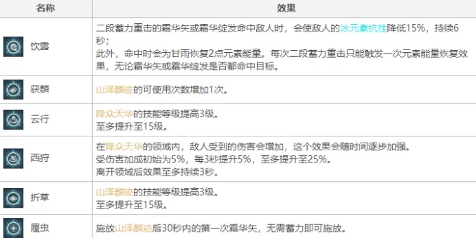 霜华矢发射后的5秒内,会使接下来的发射的霜华矢与这些霜华矢引发的霜华绽发的暴击率提高20%。