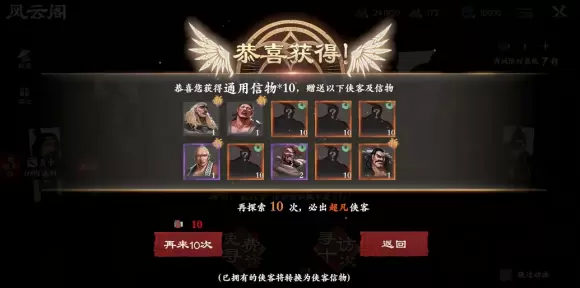 (在侠客贴充裕的情况下,还可以来到风云阁抽取相应侠客。)