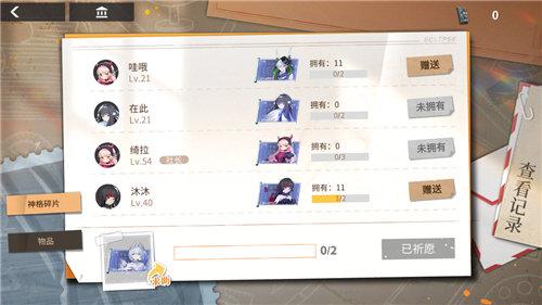 在【祈愿墙】上,解神者大人可以留言祈愿想要获得的神格碎片或神格礼物,社团成员之间可进行相互赠礼达成心愿。