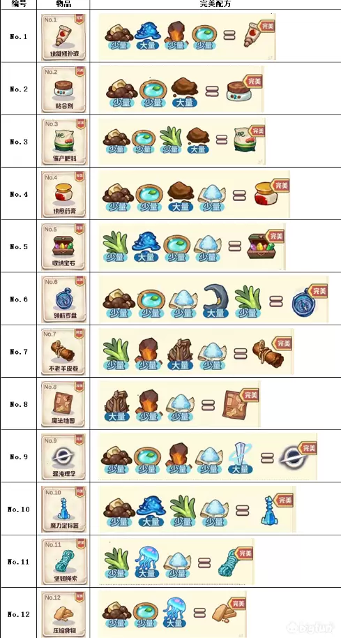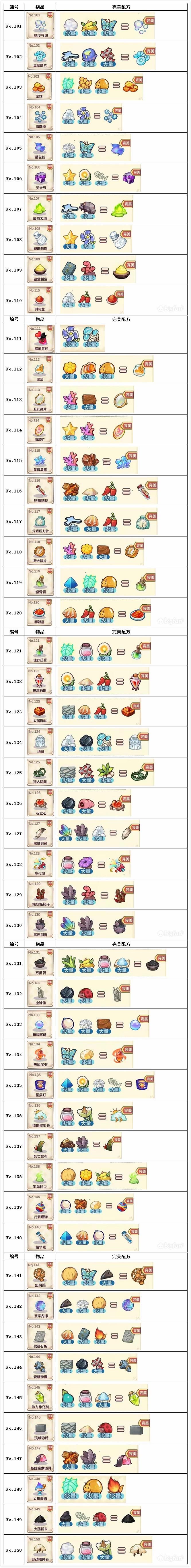 诺弗兰物语完美配方合集(普通156+活动12,更新完成)