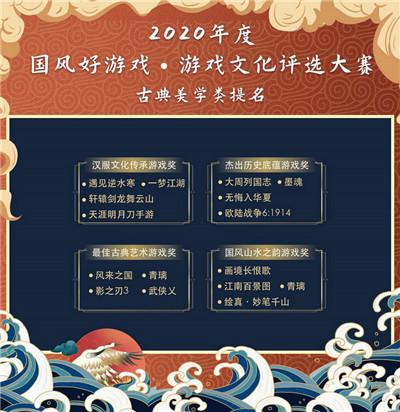 通过这些不同文化领域的奖项,好游戏APP期望游戏企业能更加重视游戏中传统文化的铸造,积极弘扬中国优秀传统文化,让这些文化得以传承。以下为本次游戏文化评选大赛入围的所有具体名单,一起来看下都有哪些独具文化气息的优秀作品吧。