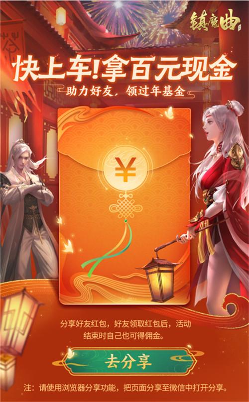经典怀旧、新鲜玩法齐至,又怎能少了周年庆典必备的活动呢?《镇魔曲》前所未有大手笔到来,每位天命者都能领取现金红包!今天开始,你就能分享你的专属邀请链接,让好友来到中州一同冒险。只要好友注册、创建角色,并跟随指引完成红包任务,就能不断为你累积红包额度,达到标准就能随时提现收入微信零钱!应邀而至的好友,同样可以开启专属邀请链接,让更多朋友一起游戏、领取属于他的现金红包!