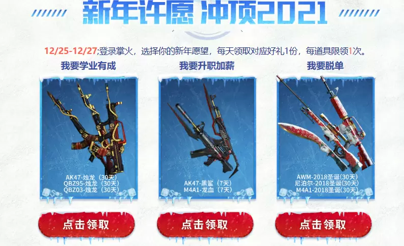 3、在12月25日至12月27日登录掌火,然后进行新年许愿,可以每天领取新年礼物,每次领取一样。