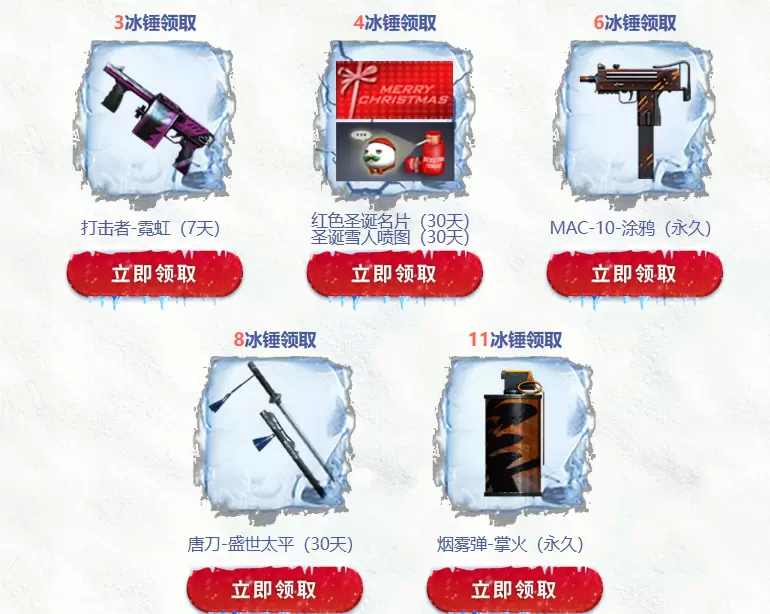 2、收集冰锤,然后用冰锤来兑换武器等奖励,每个道具最多领取一次。