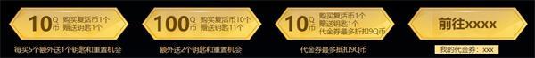 1、在活动期间,通过购买复活币,可以获得要是,要是可以去奖池里抽奖。10Q币可以购买一个复活币,送一个钥匙。