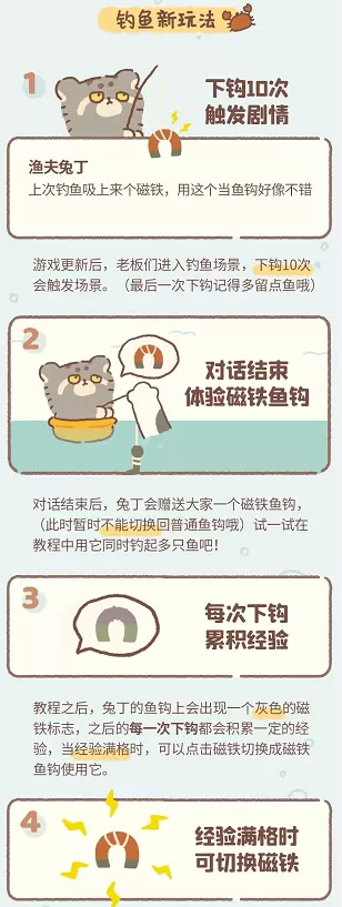 动物餐厅磁铁鱼钩怎么使用?动物餐厅磁铁鱼钩钓鱼的方法是什么?下面为大家带来动物餐厅磁铁鱼钩道具的使用攻略,不清楚的小伙伴快来看看吧。