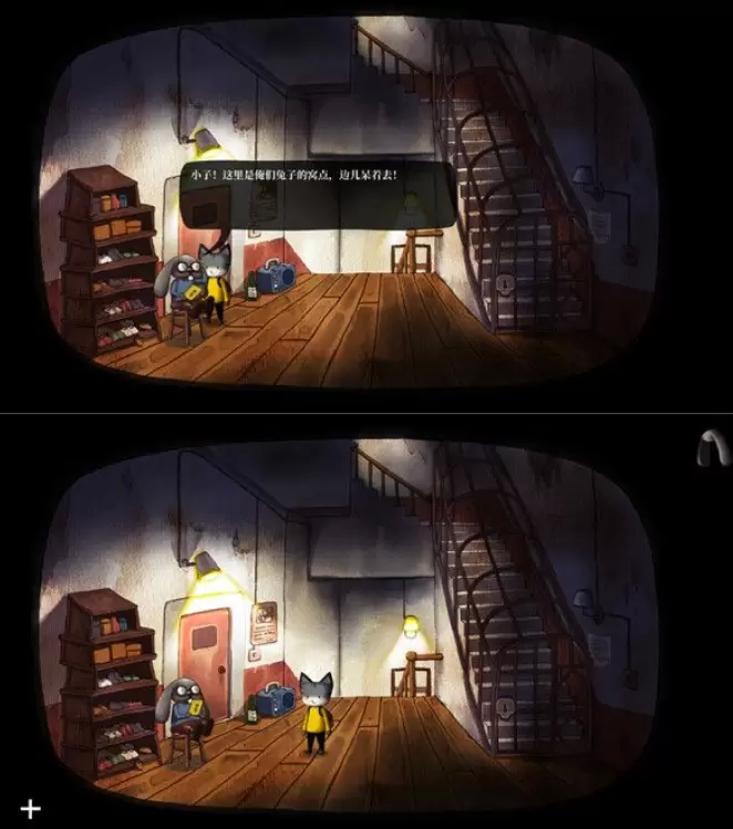 进入后,与羊驼对话,获得线索,于是把耳罩给他,然后获取旁边的兔耳朵耳罩,给自己戴上(伪装为一只兔子),然后去3楼,与兔先生对话,进入兔先生房间