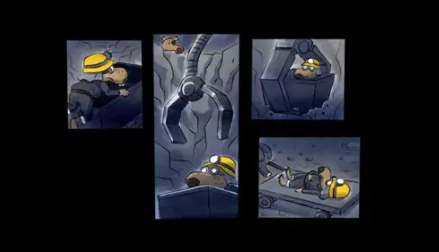 接下来使用铲子挖煤至矿车内直至矿车装满,然后推矿车至电梯口附近,接下来绕路,从竖井上去,出居民楼,进入矿坑二楼,然后坐电梯下一楼