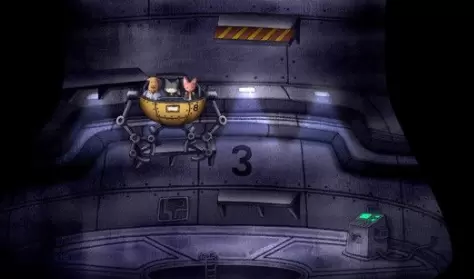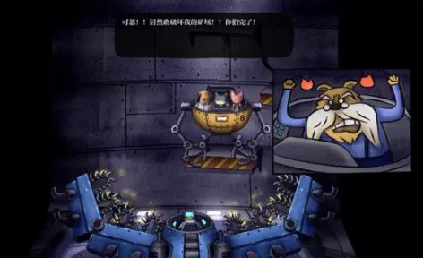 将主角三人移动至机器人里,控制机器人从烟囱逃离(这儿得使用炸药炸狗爷爷的机器,每炸一次狗爷爷扣一格血,总共5格,而我们有3格血,注意不要被狗爷爷的子弹击中或者掉下去,待狗爷爷血条为空时逃脱成功),最后控制主角坐上飞行器,游戏结束