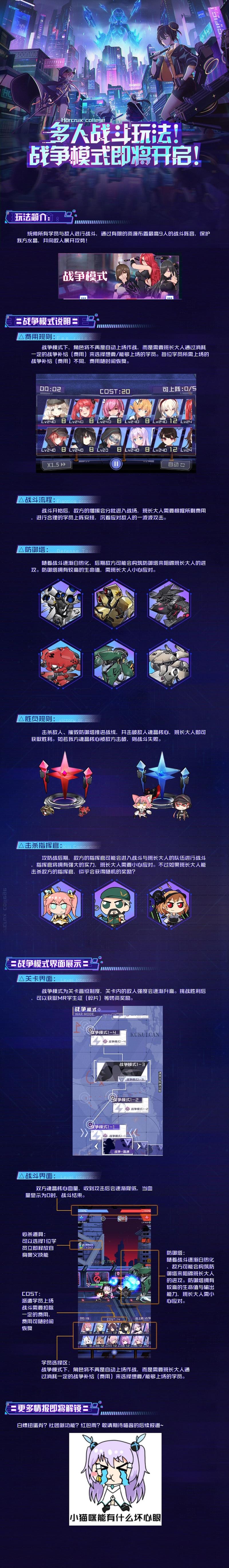本期喵酱带来了战争模式的玩法海报供班长大人进行浏览,相信眼睛尖的班长已经发现【白嫖】通用学生卡的方法了~更多情报会在【春节版本大爆料】的后续内容中逐一展示!