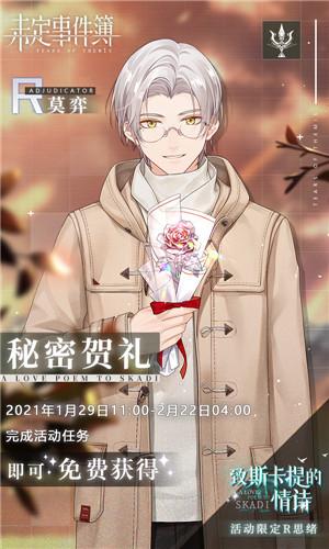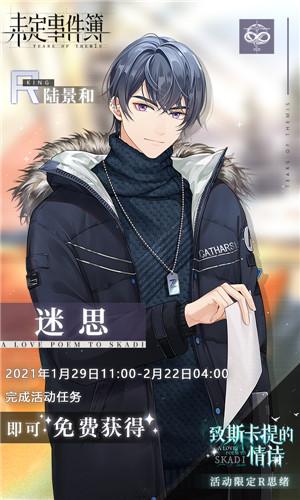1月29日,「致斯卡提的情诗」活动正式开启,多重限定活动福利助力异国旅途。2021年1月29日11:00-2月2日03:59期间,每日登录前往「商城-礼包-活动」即可免费领取【女神之泪·情诗】×2,2021年2月2日04:00-2月4日04:00期间,每日登录前往「商城-礼包-活动」即可免费领取【女神之泪·情诗】×1,共计可获十连。