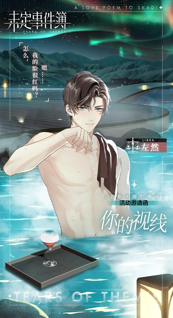执手邀约,温热对视,共度此时,品尝甜蜜。玩家将与身边的他一同享受美妙温泉约会,共赏浪漫极光。