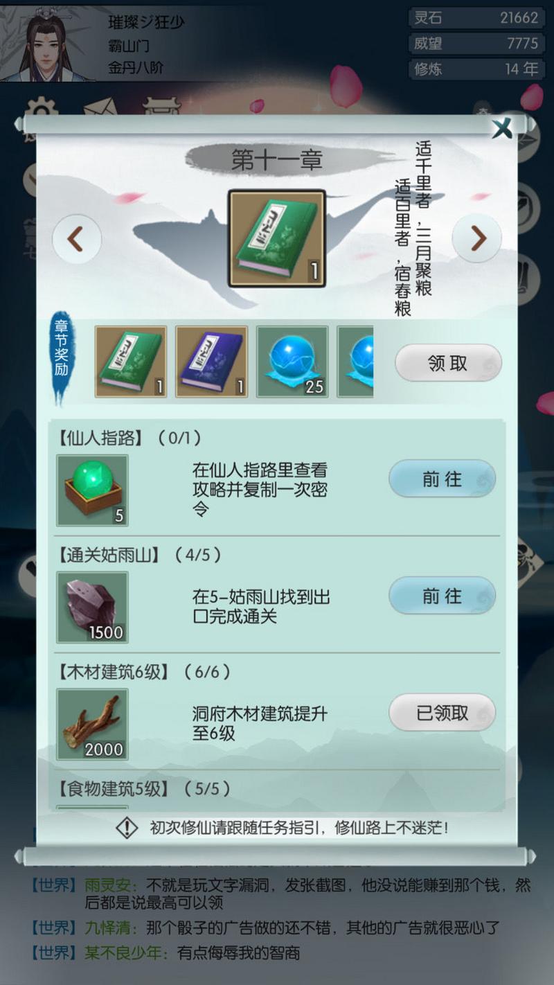 注意事项:最好考虑一下自己睡觉时间,尽可能少损失木头,可以把多的木头升级陨铁。15的食物盈余加上每天的洞府加速是可以神游25关两界峰300次的。故而食物盈余尽可能控制在15左右。前面洞府等级一定要拉起来,越高越好飞升后需要大量的木头陨铁建设宗门。