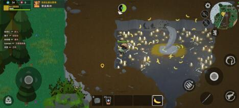 如图位置,山洞间,极细处,见香蕉石,扔香蕉在托盘。