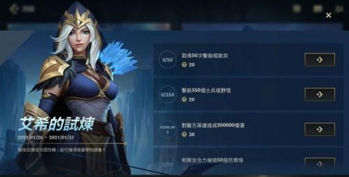 艾希的试炼是LOL手游近期新开放的一项限时活动,玩家通过完成相应任务来获取活动奖励。