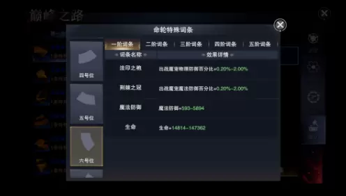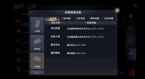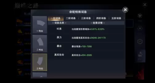 2号位、4号位、6号位主要提高免暴抗暴、格挡和防御属性,前排职业优先选择这些部件进行进阶和强化。想要提升魔宠强度的玩家,也可以在洗练时也可以选择印记、赎罪、古龙之鳞、法印之袍和荆棘之冠等词条,增强魔宠生存能力。