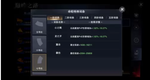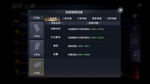 命轮的1号位、3号位、5号位、7号位主要提供暴击爆伤、双方解除和重击属性,追求极致输出的职业建议优先提升这些部件的命轮,以1号位、5号位、7号位最后3号位的顺序进行进阶和强化。