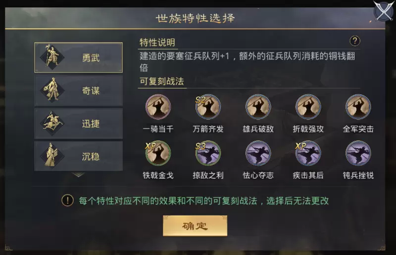 此外,相比于过往,“世族”相关系统也充分尊重了不同世族群体间的多样性,在“世族特性”维度设计了多种特性供玩家选择,一方面使各个“世族小团体”都能依据各自喜好形成不同的特点与搭配思路;另一方面,百花齐放的世族特性也使世族间的战争更具策略性。
