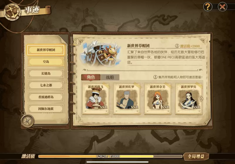 其次就是游戏内新出的玩法了,全新的图鉴玩法点燃了不少船长们的“收集癖”之魂。新图鉴玩法有一个特点:除了草帽团的角色,其他人物都是根据岛屿出的。船长们可以发现目前有四个“敬请期待”的角色,分别在德雷斯罗萨,和之国以及圣地玛丽乔亚。仅从这个新图鉴的系统分类,就会发现官方提前给大家透露了很多新角色信息,所以船长们可以来大胆预测之后将会出什么新角色了!