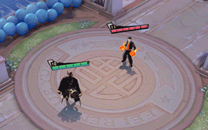 技能2【热感飞弹】牛魔侧身甩手,三个打火机被丢出,并圈定一小块领域,随后地上浮现出金牛图案,引导三枚小火箭弹轰炸指点地点,将敌人笼罩在猛烈的爆炸里。