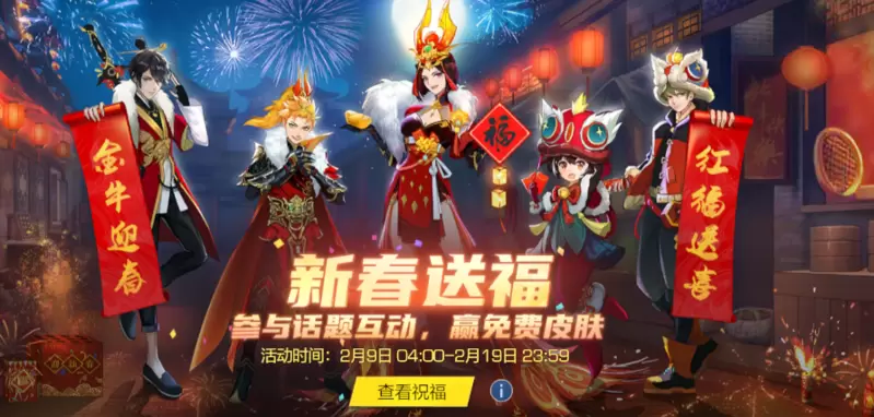 2月9日04:00-2月29日03:59,英雄们将在朋友圈为大家送上新春祝福!参与互动,即有机会获得该英雄的“永久时装”,奖池总价值超过50000光玉!