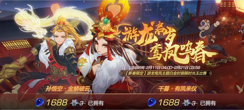2月11日04:00-2月21日03:59,新年主题时装千暮“有凤来仪”×孙悟空“金鳞破云”,将一同登陆风云岛,给大家拜年啦!各位勇士注意哦!等活动结束后,这两件时装都将进入白金兑换池。想要入手的勇士不要错过!