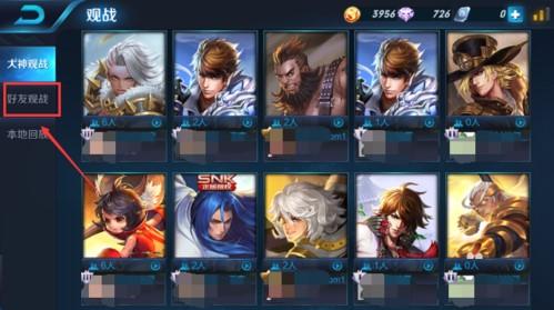 2、进入观战页面后,点击左侧第二个【好友观战】;