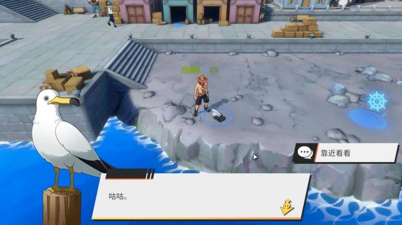 在“罗格镇”登陆点的旁边有一只海鸥,玩家靠近后可与之产生对话。这里同“海上餐厅”时的NPC海鸥一样,选择给它事物后,会消耗“巧克力蛋卷X1”。对话结束后,玩家获得“普通召唤卷X1”奖励。