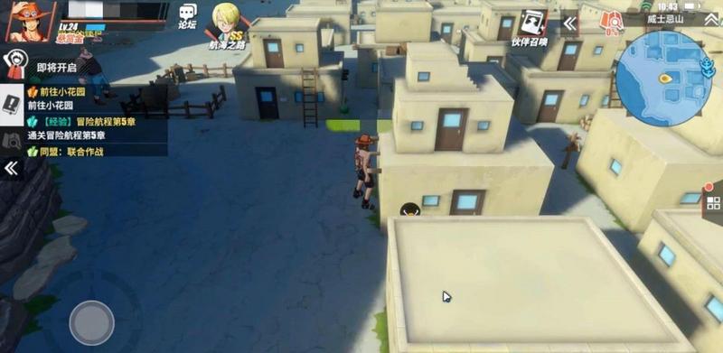 而以“克罗卡斯”为起点,向右下方一直走,此处还隐藏了另外一段“剧情回忆”(上图处)——神秘的公司。此回忆需要三名成员,分别是:路飞、娜美和薇薇公主三人。