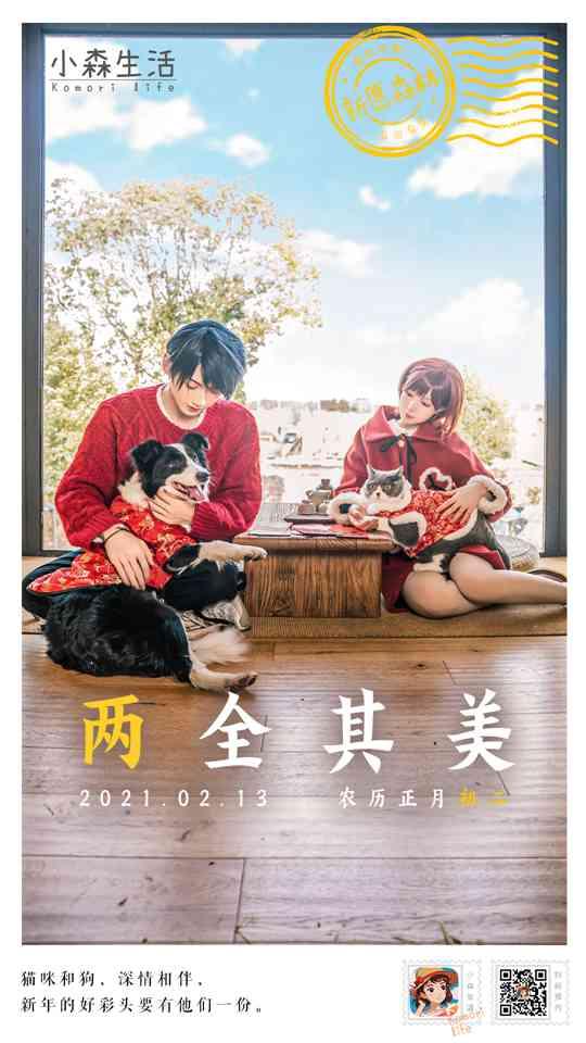 大年初二,花音希望习惯独来独往的你有人陪伴在身旁~如果找不到人的话,猫咪或狗狗也不是不可以~