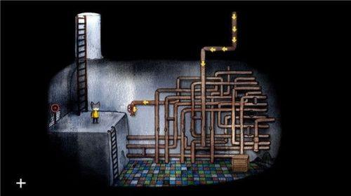 原路返回,进入居民楼,然后进入蓝色门房间,检查柜台,然后与山羊爷爷对话,山羊爷爷要求主角把炉子排气管修好,于是检查排气管,打开左侧门,发现其与隔壁家的管道连在了一起,于是返回居民楼内
